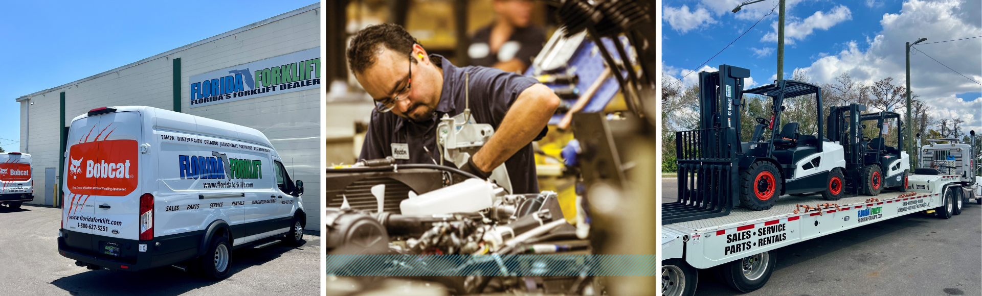 Companies today rely on forklifts to move their product safely and efficiently. Our Service Department treats our customers with honesty and integrity, while providing quick response times to get your forklift back up and running. Florida Forklift has over 45 highly trained factory technicians ready to be dispatched to your location to diagnose and resolve your issue.